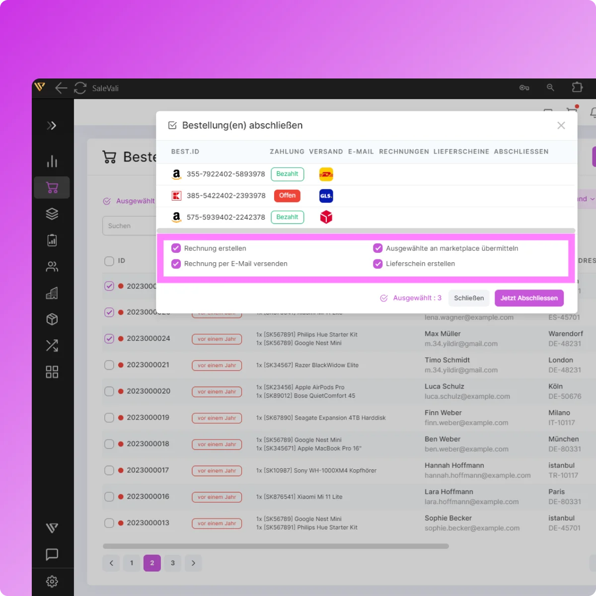 - ✓ Automatisierte Bestellverarbeitung nach Maß